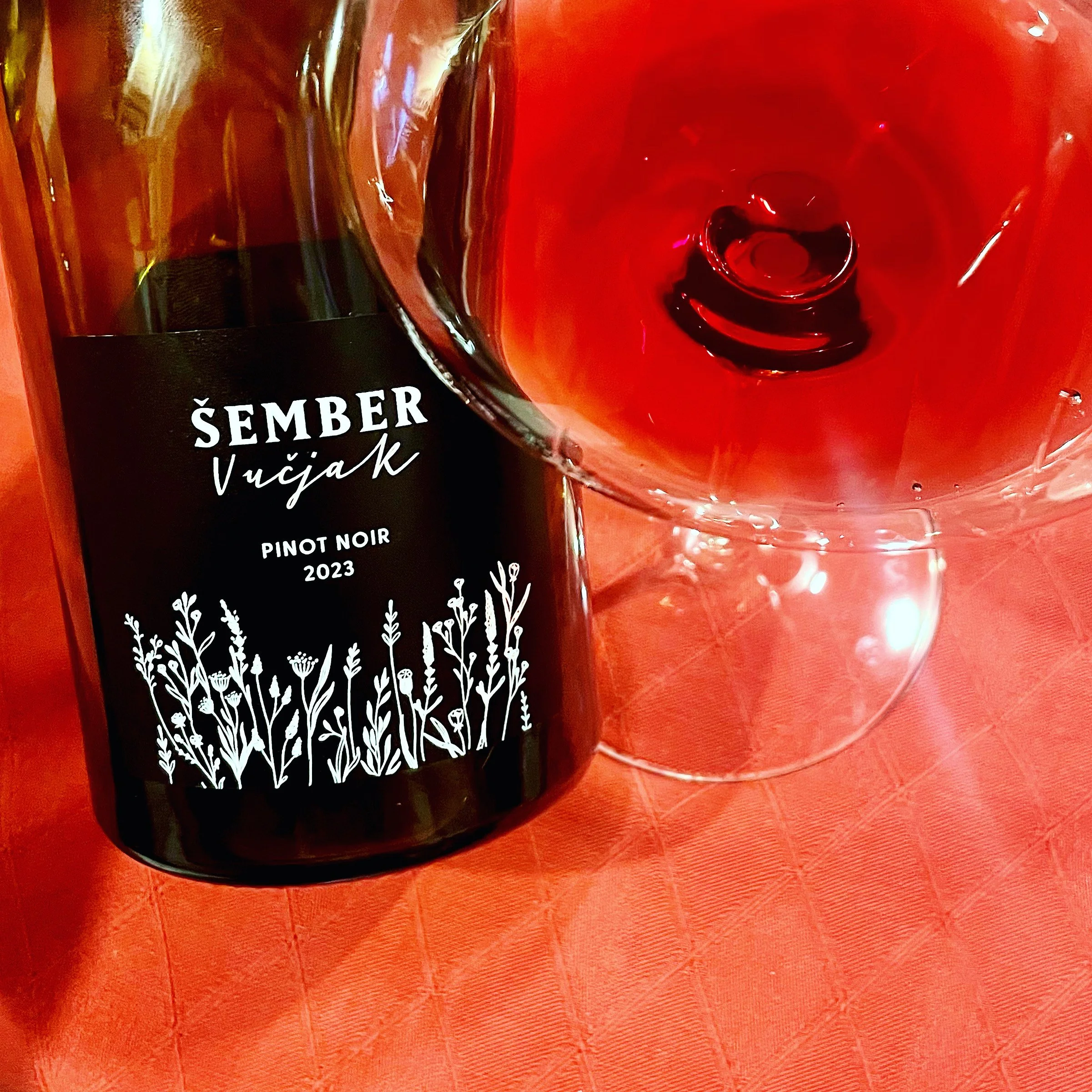Šember Pinot Crni Vučjak 2023 — Enkeltmarks-Pinot med flygelklang i d-dur. Forførende friskfrugtig duft af fuldmodne skovjordbær, jordbærsyltetøj og toner af røde roser og grønne urter. Silkeblød mundfølelse med fin fylde af jordbær, hindbær og flødekaramel, med en mundvandsdrivende syre, mineralsk spil og flot balance. En lækkerbidsken! Modnet på en blanding af nye og brugte store fade, fransk og kroatisk eg. Alk.: 13%