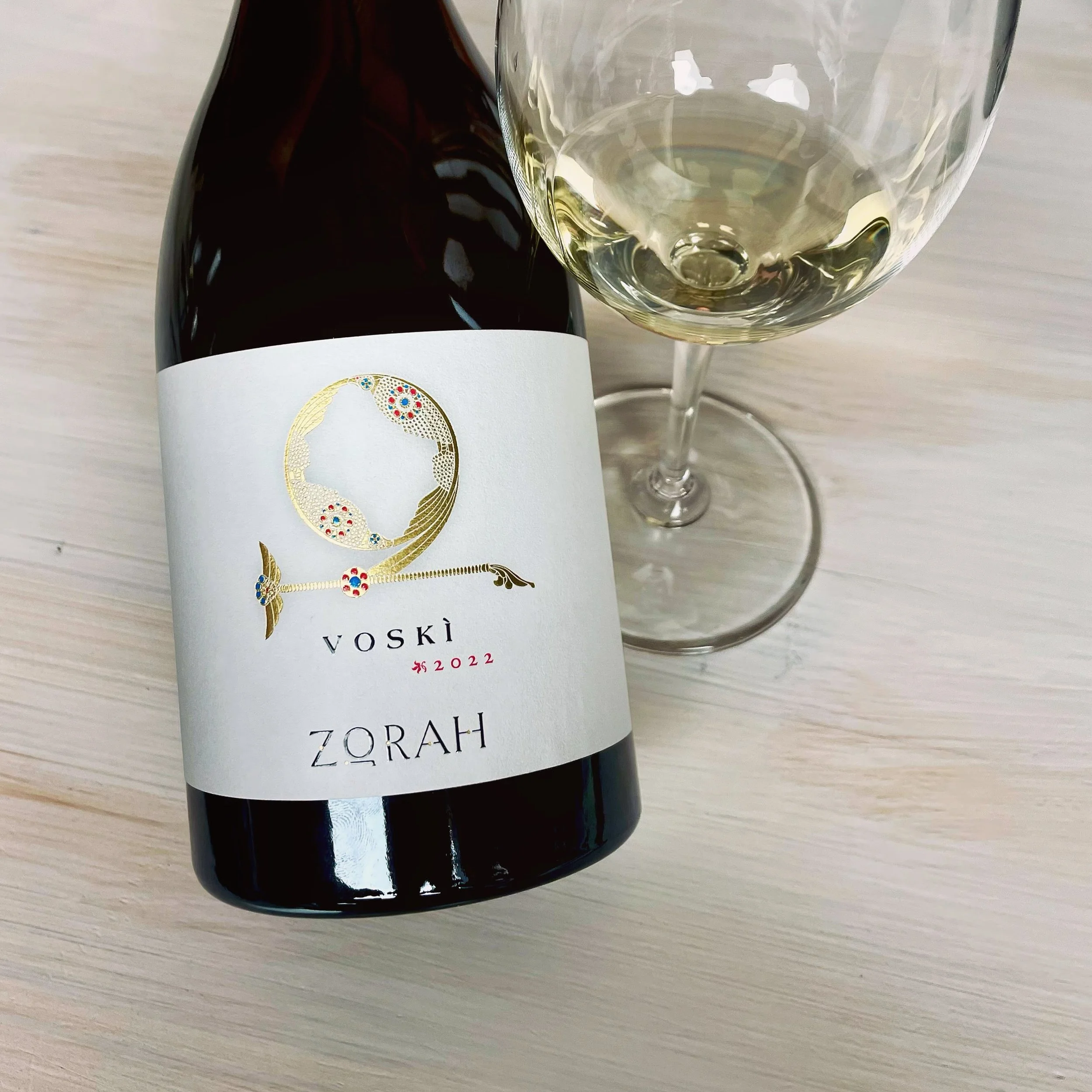 Fascinerende at noget så gammelt kan smage så nyt. Zorik Gharibian og hans familie vækker fortiden til live igen i det armenske højland, her med en glimrende, gylden hvidvin på de indfødte sorter Voskehat og den sjældne Garan Dmak. Nuvel, stokkene er kun 30-40 år gamle, men selekteret fra bedagede marker og allerede dybt fæstet på egne rødder, da phylloxera aldrig har ramt den afsides beliggende bjergregion Vayots Dzor, og podning på amerikanske rødder derfor er unødvendigt. Vi er i godt 1.400 meters højde, jordbunden er sandet og stenet, rå kalksten, og klimaet kontinentalt med hede, solrige sommerdage og kolde nætter, der sikrer en syrlig nerve i druerne. Desuden rækker vækstsæsonen langt ind i oktober, og den langsomme modning giver en subtil aromatisk kompleksitet til vinen. I næsen er den kølig og kompakt, med mild duft af fine forårsblomster og frisk stenfrugt og små eksotiske strejf. Fin balance, i munden saftig, glat, læskende og fritløbende, med lys stenfrugt, akaciehonning, kamillete, salt mineralitet og historiens vingesus.