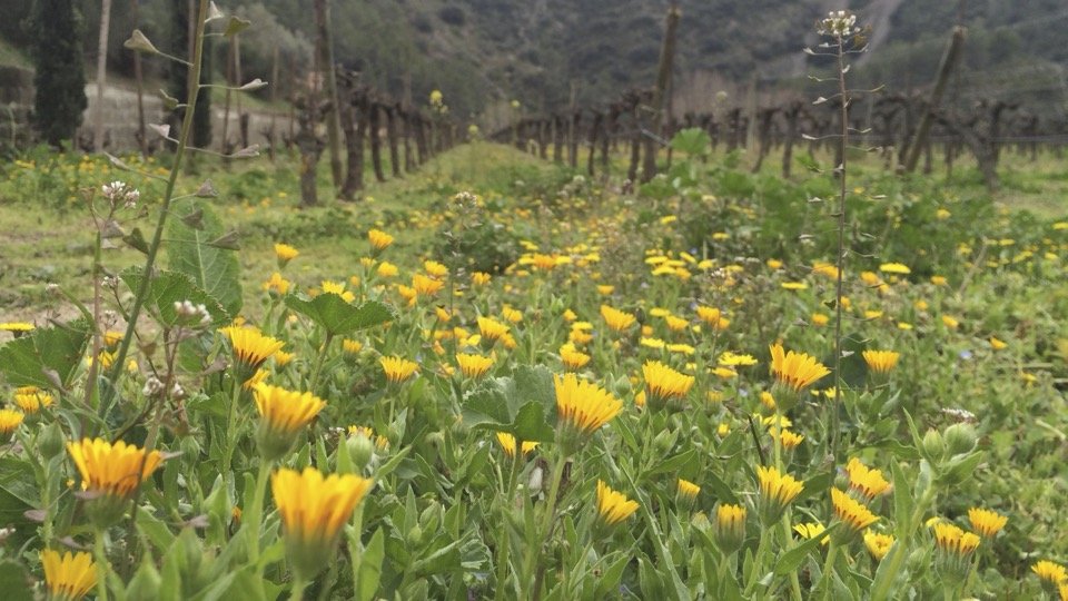 En af hendes kæpheste er grønt bunddække i vinmarkerne, som hjælper hende med at sænke temperaturen i det soltørre terroir, som sammen med Andalusien i Spanien hører til blandt Europas allertørreste og hedeste. Så hun sår forskellige robuste urter og græsser, som om sommeren sænker den direkte fordampning, sænker temperaturen og tillige hjælper med at binde kvælstof og kulstof i jorden. Senere nedfældes de i jorden, før de selv begynder at forbruge for meget vand; eller tørrer ud og bliver en brandfare under den brændende sol.